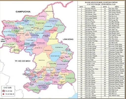Hình 1 - Bản đồ hành chính tỉnh Đồng Nai sau sáp nhập ngày 01/7/2025