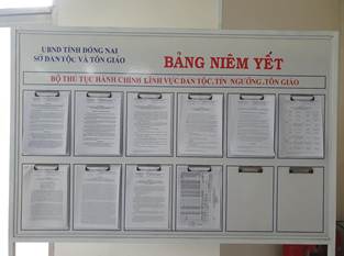 Hình 4 - Bảng niêm yết thông tin và hộp thư góp ý được bố trí tại trụ sở Sở Dân tộc và Tôn giáo tỉnh Đồng Nai
