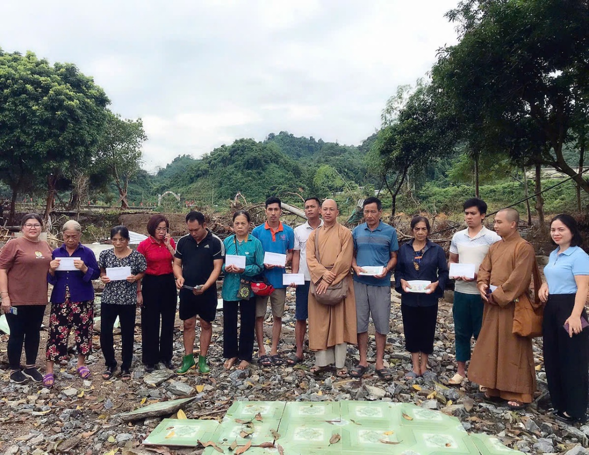 Đại Đức Thích Chơn Nghĩa đại diện Ban Trị sự GHPGVN tỉnh Đồng Nai trao tặng mỗi hộ 10 triệu đồng khắc phục Lũ lụt Yagi tại tỉnh Tuyên Quang