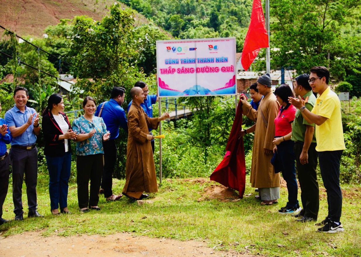 Đại Đức Thích Chơn Nghĩa đại diện Ban Trị sự GHPGVN tỉnh Đồng Nai trao tặng mỗi hộ 25 đèn năng lượng cho công trình thắp sáng tại tỉnh Gia Lai