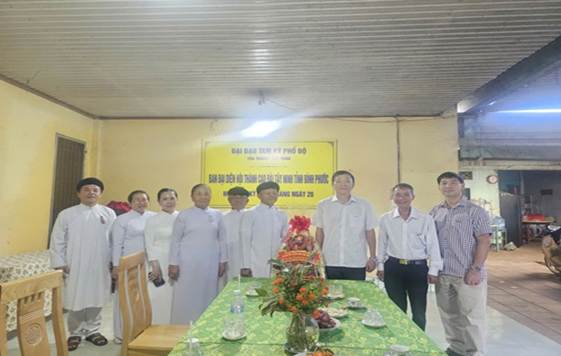 Hình 2: Ông Trần Thanh Hòa - Giám đốc Sở Dân tộc và Tôn giáo tỉnh Đồng Nai thăm, chúc Tết Ban Đại diện Hội thánh Cao Đài Tây Ninh tỉnh Đồng Nai tại Thánh thất Cao Đài Chơn Thành, phường Chơn Thành