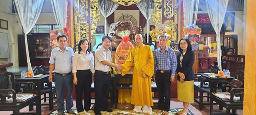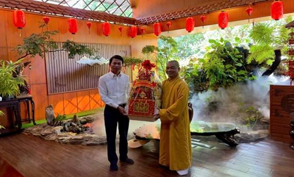 Hình 5: Ông Hoàng Cư - Phó Giám đốc Sở Dân tộc và Tôn giáo tỉnh Đồng Nai thăm, chúc Tết Đại đức Thích Kiến Quang - Ủy viên Ban Trị sự Giáo hội