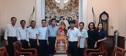 Hình 4: Ông Nguyễn Văn Khang - Phó Giám đốc Sở Dân tộc và Tôn giáo tỉnh Đồng Nai thăm, chúc Tết Linh mục Giuse Đinh Văn Huấn - Hạt trưởng Giáo hạt Long Khánh