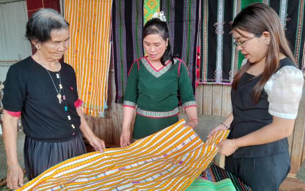 Hình 1. Chị Thị Tức (chính giữa) ở thôn Bù Dốt, xã Bù Gia Mập, tỉnh Đồng Nai là một trong những người còn giữ gìn Nghề dệt thổ cẩm của người M’nông - Di sản Văn hóa phi vật thể quốc gia