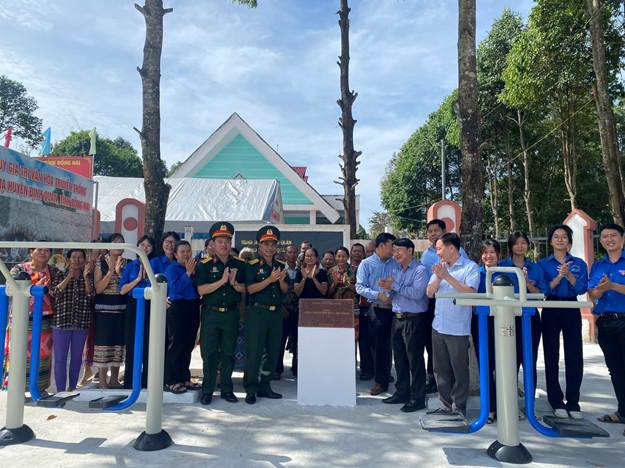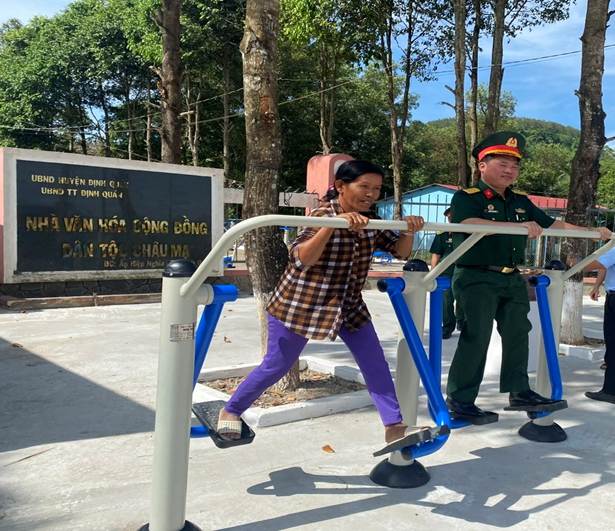 Được biết, công trình có diện tích xây dựng khoảng 480.96 m2, gồm các hạng mục: - Sân bê tông diện tích 480.96 m2.- Mương thoát nước xây đá chẻ có nắp đan chịu lực dài 30m. - Lắp thiết bị thể dục: 12 dụng cụ, cụ thể: 01 Máy đi bộ trên không, 02 Lưng eo; 02 Xoay eo; 01 Tay vai đôi; 01 Xe đạp:; 01 Lưng bụng:; 01 Đạp Chân:; 01 Xà đơn 02 bậc; 01 Tập toàn thân; 01 Xà kép …, với kinh phí hơn 529 triệu đồng trong đó Bộ Chỉ huy Quân sự tỉnh Đồng Nai hỗ trợ 500 triệu đồng.