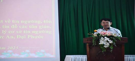 Các chuyên đề Hội nghị do các báo cáo viên cấp tỉnh: Ông Nguyễn Văn Khang - Phó Giám đốc Sở Dân tộc và Tôn giáo; ông Trần Thương Huyền, Trưởng phòng Tôn giáo - Tín ngưỡng trình bày.