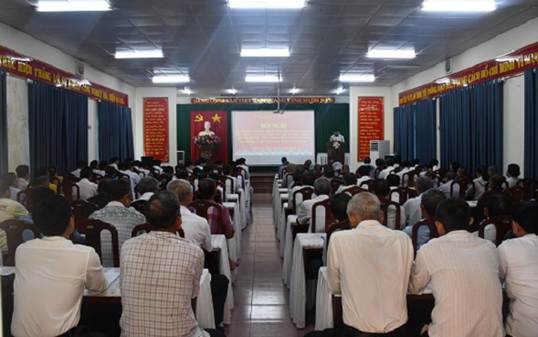 Hình 1. Toàn cảnh Hội nghị tuyên truyền, phổ biến, giáo dục pháp luật cho chức sắc, chức việc, nhà tu hành, tín đồ các tôn giáo, người đại diện hoặc thành viên Ban Quản lý cơ sở tín ngưỡng tại Hội trường UBND xã Nhơn Trạch.
