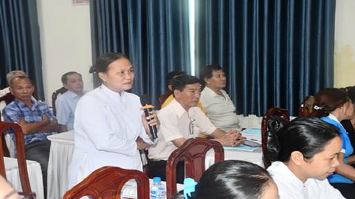 Sau khi nghe các báo cáo viên triển khai tại Hội nghị tuyên truyền đại diện Họ đạo Cao Đài Long Tân đã trao đổi và đặt các câu hỏi để báo cáo viên thông tin thêm về các quy định của pháp luật liên quan đến đất đai để Họ đạo liên hệ với cơ quan có thẩm quyền thực hiện.