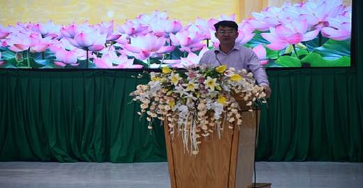 Hình 3. Ông Trần Thương Huyền, Trưởng phòng Tôn giáo - Tín ngưỡng, Sở Dân tộc và tôn giáo, báo cáo viên trình bày tại hội nghị
