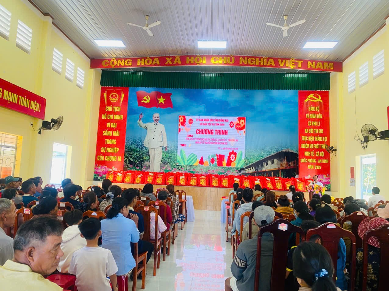 Chương trình buổi trao quà được chia làm hai đợt được thực hiện theo nội dung, chương trình của Kế hoạch đề ra. Đợt 1, Sở Dân tộc và Tôn giáo trao tặng 206 phần quà bằng tiền mặt trị giá 500.000 đồng từ nguồn ngân sách nhà nước cho các hộ gia đình dân tộc thiểu số có hoàn cảnh khó khăn xã Phú Lý. Đồng thời phối hợp với UBMTTQ Việt Nam tỉnh, Công an tỉnh, Hội doanh nghiệp trẻ tỉnh Đồng Nai – Tập đoàn Bcons hỗ trợ phân bổ 200 phần quà bằng hiện vật trị giá 500.000 đồng cho các hộ nghèo, hộ cận nghèo, hộ khó khăn của xã. Tổng số lượng 406 hộ với kinh phí quà tặng là 203.000.000 đồng.