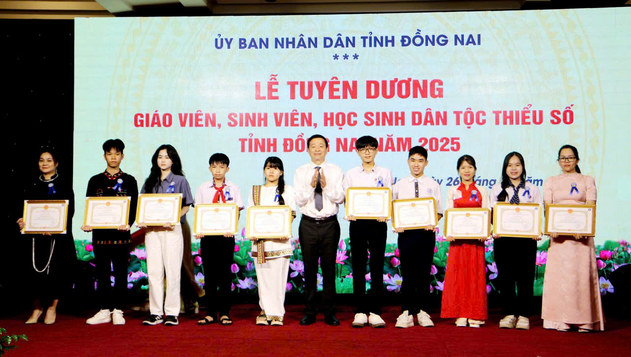 Đặc biệt, nhiều hội nghị tuyên dương, biểu dương điển hình tiên tiến trong vùng đồng bào dân tộc thiểu số được tổ chức trang trọng, ý nghĩa như “Hội nghị biểu dương, khen thưởng gia đình dân tộc thiểu số tiêu biểu năm 2025”, “Hội nghị biểu dương điển hình tiên tiến trong đồng bào dân tộc thiểu số tỉnh Đồng Nai năm 2025”,“ Lễ Tuyên dương giáo viên, học sinh, sinh viên dân tộc thiểu số tỉnh Đồng Nai năm 2025”, “Hội nghị tổng kết và biểu dương khen thưởng người có uy tín trong đồng bào dân tộc thiểu số trên địa bàn tỉnh Đồng Nai năm 2025”. Theo đó, Sở đã đề nghị UBND tỉnh tặng Bằng khen cho 73 cá nhân, tặng Giấy khen của Giám đốc Sở cho 50 hộ gia đình, 261 cá nhân tiêu biểu, xuất sắc là người dân tộc thiểu số. Tại Đại hội Thi đua yêu nước tỉnh Đồng Nai năm 2025, có 01 tập thể và 03 cá nhân điển hình tiên tiến được tặng Bằng khen của UBND tỉnh, 04 đại biểu được tham dự Đại hội Thi đua yêu nước toàn quốc.