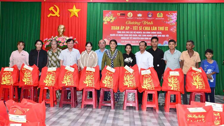 Nhân dịp Tết Nguyên đán Bính Ngọ năm 2026, với tinh thần “Tương thân tương ái - Không để ai bị bỏ lại phía sau”, chiều ngày 05/02/2026 tại Hội trường UBND xã Lộc Quang, Ban Thường trực Ủy ban Mặt Trận Tổ quốc Việt Nam tỉnh, Sở Dân tộc và Tôn giáo, Công an tỉnh và Ủy ban Mặt trận Tổ quốc Việt Nam xã phối hợp trao tặng 150 phần quà do Hội doanh nhân trẻ tỉnh Đồng Nai - Tập đoàn BCONS hỗ trợ cho đồng bào dân tộc thiểu số có hoàn cảnh khó khăn trên địa bàn xã Lộc Quang.