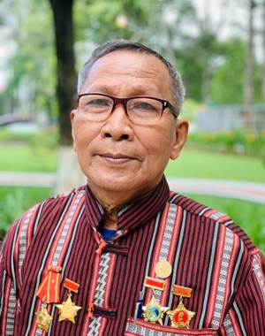 Hình 2. Ông Nguyễn Đình Biên, người uy tín trong đồng bào dân tộc Chơro, xã Phú Lý, tỉnh Đồng Nai tham dự Đại hội |