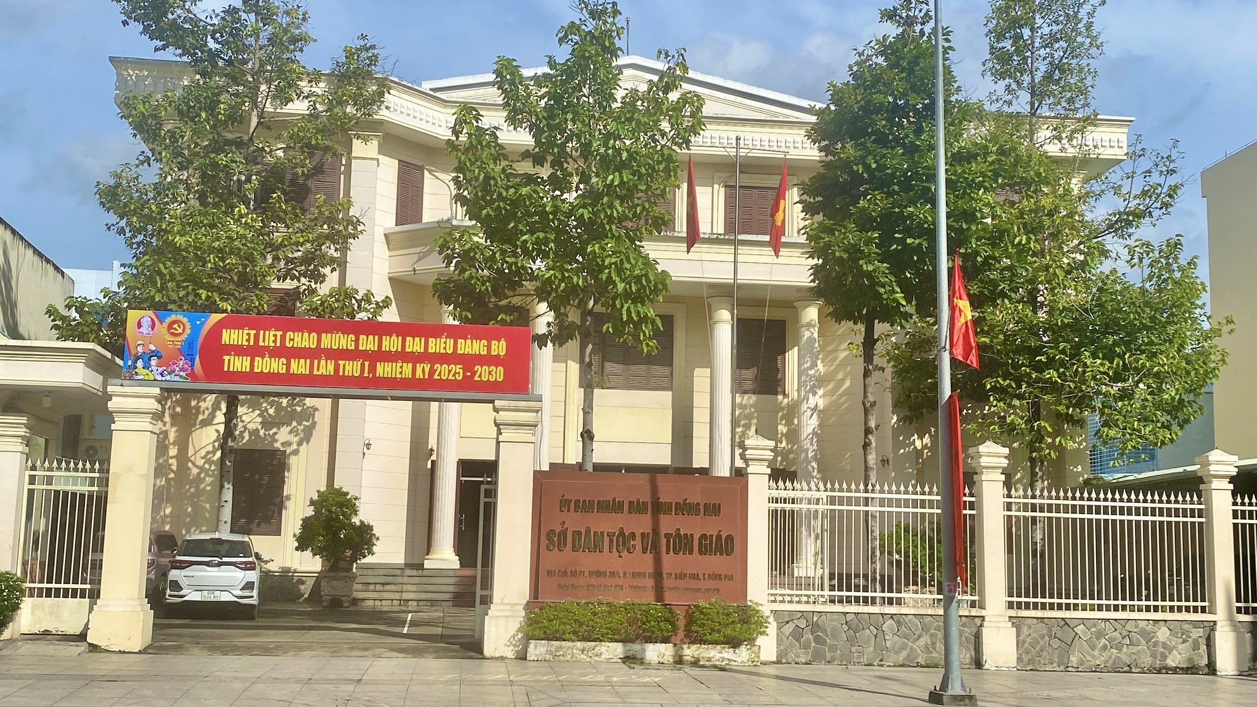 Hình 1: Đảng bộ Sở Dân tộc và Tôn giáo treo khẩu hiệu tuyên truyền “Nhiệt liệt chào mừng Đại hội đại biểu Đảng bộ tỉnh Đồng Nai lần thứ I, nhiệm kỳ 2025 - 2030”