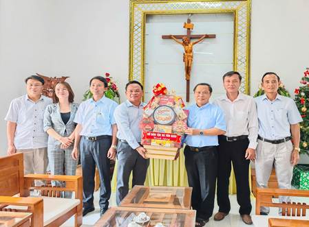 Hình 2 - Đồng chí Điểu Nen và đồng chí Hoàng Cư, Phó Giám đốc Sở Dân tộc và Tôn giáo tỉnh Đồng Nai thăm chúc mừng chức sắc Công giáo trên địa bàn