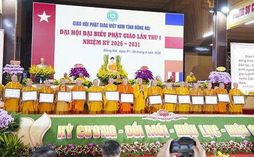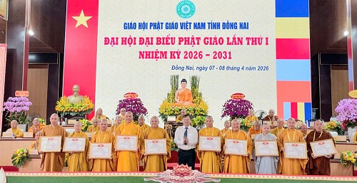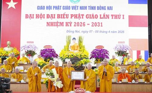 <p style="text-align:justify;">Trong 02 ngày 07/4 và 08/4/2026, Ban Trị sự Giáo hội Phật giáo Việt Nam tỉnh Đồng Nai tổ chức Đại hội đại biểu Giáo hội Phật giáo Việt Nam tỉnh Đồng Nai lần thứ I, nhiệm kỳ 2026 - 2031 tại Trụ sở Ban Trị sự Giáo hội Phật giáo Việt Nam tỉnh (Chùa Tỉnh Hội, khu phố Nhất Hòa, phường Trấn Biên, tỉnh Đồng Nai).</p><p style="text-align:justify;">Tham dự Đại hội có Hòa thượng Thích Thiện Nhơn -&nbsp;Phó Pháp chủ&nbsp;Giáo hội Phật giáo Việt Nam, Chủ tịch Hội đồng Trị sự Giáo hội Phật giáo Việt Nam; Hòa thượng&nbsp;Thích Thiện Pháp - Ủy viên&nbsp;Thường trực Hội đồng Chứng minh, Phó Chủ tịch&nbsp;Hội đồng Trị sự Giáo hội Phật giáo Việt Nam; thành viên Hội đồng Chứng minh, Hội đồng Trị sự Giáo hội Phật giáo Việt Nam; Chứng minh Ban Trị sự Giáo hội Phật giáo Việt Nam tỉnh; thành viên Ban Trị sự Giáo hội Phật giáo Việt Nam tỉnh Đồng Nai; đại diện Ban Trị sự Giáo hội Phật giáo Việt Nam tỉnh Lâm Đồng, tỉnh Tây Ninh và Thành phố Hồ Chí Minh; khoảng 1.000 tăng, ni, phật tử trong và ngoài tỉnh Đồng Nai. Về phía chính quyền tỉnh Đồng Nai, có đồng chí Huỳnh Thị Hằng - Phó Bí thư Tỉnh ủy, Chủ tịch Ủy ban Mặt trận Tổ quốc Việt Nam tỉnh; đồng chí Đặng Minh Nguyệt - Ủy viên Ban Thường vụ Tỉnh ủy, Phó Chủ tịch Thường trực Hội đồng nhân dân tỉnh; đồng chí Nguyễn Thị Hoàng - Tỉnh ủy viên, Phó Chủ tịch Ủy ban nhân dân tỉnh; đồng chí Nguyễn Tấn Phú - Phó Chủ tịch Ủy ban Mặt trận Tổ quốc Việt Nam tỉnh; đồng chí Lê Thị Thái - Tỉnh ủy viên, Phó Trưởng ban Ban Tuyên giáo và Dân vận Tỉnh ủy; đồng chí Nguyễn Minh Hoàng - Chánh Văn phòng Ủy ban nhân dân tỉnh; đồng chí Nguyễn Văn Khang - Phó Giám đốc Sở Dân tộc và Tôn giáo; đồng chí Đoàn Thị Thu Thủy - Phó Giám đốc Sở Nội vụ; đồng chí&nbsp;Nguyễn Văn Lương - Phó Trưởng phòng Phòng An ninh Nội địa Công an tỉnh; đồng chí Võ Đăng Khoa - Phó Bí thư Thường trực Đảng ủy phường Bình Phước; đồng chí Lâm Tấn Khải, Phó Bí thư Thường trực Đảng ủy phường Trấn Biên; đồng chí Nguyễn Duy Tân - Phó Bí thư Đảng ủy, Chủ tịch Ủy ban nhân dân phường Trấn Biên; các đồng chí nguyên lãnh đạo Ủy ban Mặt trận Tổ quốc Việt Nam tỉnh, Ủy ban nhân dân tỉnh, Ban Tổ chức Tỉnh ủy, Ban Dân vận Tỉnh ủy, Sở Nội vụ, Ban Tôn giáo (Sở Nội vụ) tỉnh Đồng Nai (cũ) và tỉnh Bình Phước (cũ).</p><p style="text-align:center;"><i>Hình 1: Toàn cảnh Đại hội</i></p><p style="text-align:center;"><img src="https://sdttg.dongnai.gov.vn/uploads/sdttg/news/2026_04/image_60.jpeg" width="500" height="233" /></p><p style="margin-left:0in;text-align:justify;"><span style="background-color:white;color:black;">Trong&nbsp;nhiệm kỳ 2022 - 2027, Giáo hội Phật giáo Việt Nam tỉnh Đồng Nai cùng tăng, ni, phật tử luôn phát huy tinh thần “Đạo pháp - Dân tộc - Chủ nghĩa xã hội”, tích cực phối hợp hiệu quả với các cấp ủy Đảng, chính quyền, Mặt trận Tổ quốc, Nhân dân tham gia công cuộc xây dựng, phát triển đất nước. Tích cực hưởng ứng tham gia công tác từ thiện, xã hội, quốc phòng, an ninh của tỉnh. Trong đời sống xã hội, đạo đức, văn hóa, lễ nghi Phật giáo đã có những đóng góp quan trọng trong việc bảo tồn và phát huy bản sắc văn hóa địa phương, bản sắc văn hóa dân tộc, hướng con người tới chân thiện mỹ, thực hiện phương châm “sống tốt đời đẹp đạo”.&nbsp;</span>Với những đóng góp đó, tại Đại hội, Ủy ban nhân dân tỉnh Đồng Nai tặng Bằng khen cho 01 tập thể và 31 cá nhân có thành tích xuất sắc trong công tác an sinh, vận động đóng góp phát triển kinh tế - xã hội của tỉnh giai đoạn 2026 - 2031; Ủy ban Mặt trận Tổ quốc Việt Nam tỉnh tặng Bằng khen cho 10 cá nhân có thành tích xuất sắc trong tham gia thực hiện các cuộc vận động, các phong trào thi đua yêu nước giai đoạn <span style="background-color:white;color:black;">2022 - 2027;&nbsp;</span>Hội đồng Trị sự Giáo hội Phật giáo Việt Nam đã tặng bằng tuyên dương công đức cho 19 tập thể và 57 cá nhân; Ban Trị sự <span style="background-color:white;color:black;">Giáo hội Phật giáo Việt Nam tỉnh</span> tặng bằng tuyên dương công đức cho 31 tập thể và 156 cá nhân có nhiều thành tích đóng góp cho Giáo hội Phật giáo Việt Nam tỉnh Đồng Nai nhiệm kỳ <span style="background-color:white;color:black;">2022 - 2027.</span></p><p style="text-align:center;"><i>Hình 2, 3, 4: Lãnh đạo tỉnh tặng Bằng khen của Ủy ban nhân dân&nbsp;tỉnh và Bằng khen của Ủy ban Mặt trận Tổ quốc Việt Nam tỉnh cho tập thể và cá nhân tại Đại hội</i></p><p style="margin-left:0in;text-align:center;"><img src="https://sdttg.dongnai.gov.vn/uploads/sdttg/news/2026_04/image_61.jpeg" width="500" height="333" /></p><p style="margin-left:0in;text-align:justify;">&nbsp;</p><p style="margin-left:0in;text-align:center;"><img src="https://sdttg.dongnai.gov.vn/uploads/sdttg/news/2026_04/image_62.jpeg" width="500" height="261" /></p><p>&nbsp;</p><p style="text-align:center;"><img src="https://sdttg.dongnai.gov.vn/uploads/sdttg/news/2026_04/image_63.jpeg" widt