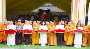 Hình 2: Ban Trị sự Giáo hội Phật giáo Việt Nam tỉnh Đồng Nai cắt băng khai mạc không gian triển lãm