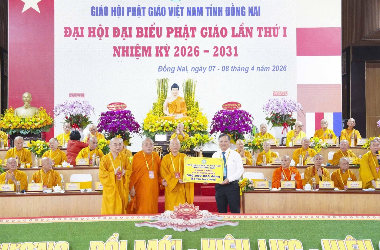 Ban Trị sự Giáo hội Phật giáo Việt Nam tỉnh Đồng Nai trao tặng 300 triệu đồng cho Quỹ vì người nghèo tỉnh tại tại Đại hội Đại biểu GHPGVN tỉnh Đồng Nai lần thứ I nhiệm kỳ 2026 - 2021
