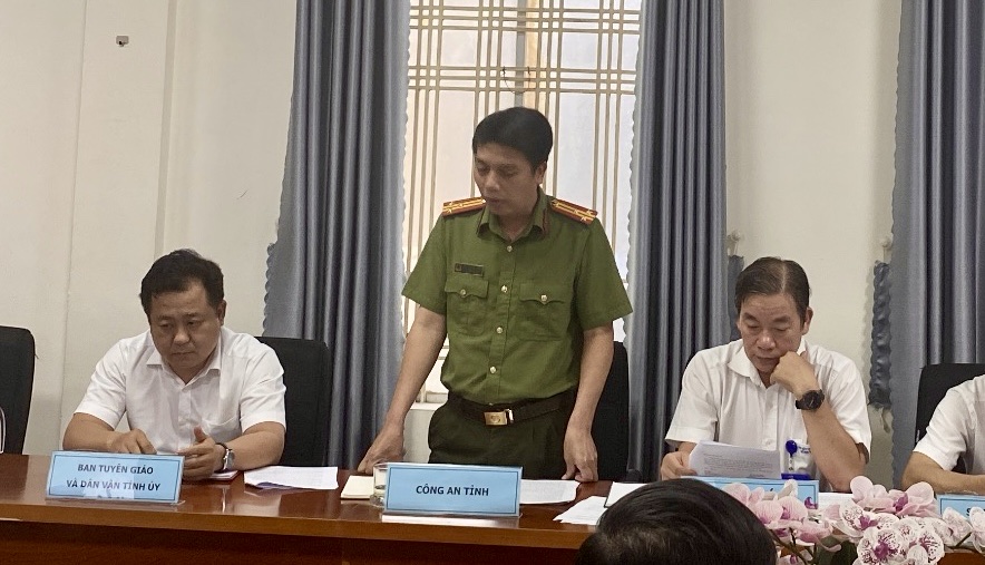 Hình 5. Thượng tá Đinh Trung Kiên, Phó Trưởng phòng PA02 Công an tỉnh phát biểu tại buổi làm việc với Ban Tôn giáo Chính phủ