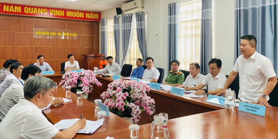 Tiếp đoàn công tác, có ông Trần Thanh Hòa - Giám đốc Sở Dân tộc và Tôn giáo và ông Nguyễn Văn Khang - Phó Giám đốc Sở Dân tộc và Tôn giáo; đại diện Lãnh đạo Ban Tuyên giáo và Dân vận Tỉnh ủy, Công an tỉnh, Sở Văn hóa - Thể thao và Du lịch, Sở Xây dựng, Sở Nông nghiệp và Môi trường; Lãnh đạo UBND các phường Biên Hòa, Long Hưng và Trấn Biên cùng Lãnh đạo, chuyên viên các phòngthuộc Sở Dân tộc và Tôn giáo tỉnh Đồng Nai.
