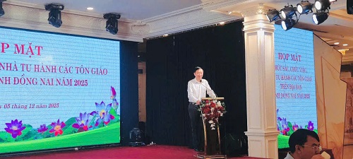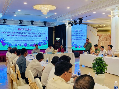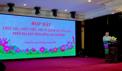 Phát biểu chào mừng tại các buổi họp mặt, đồng chí Trần Thanh Hòa - Giám đốc Sở Dân tộc và Tôn giáo thay mặt Lãnh đạo các Sở, ban, ngành chức năng của tỉnh đánh giá cao những đóng góp của các tổ chức tôn giáo, cùng sự đồng hành tích cực của chức sắc, chức việc, nhà tu hành trong việc phối hợp với chính quyền, Mặt trận Tổ quốc và các đoàn thể trong tỉnh để thực hiện hiệu quả các phong trào thi đua yêu nước trong năm 2025; đồng thời tin tưởng và mong muốn tiếp chức sắc, chức việc, nhà tu hành các tôn giáo trên địa bàn tỉnh tục phát huy những kết quả đã đạt được trong năm 2025, đồng hành cùng chính quyền trong việc củng cố khối đại đoàn kết dân tộc, vận động quần chúng tín đồ sống “tốt đời, đẹp đạo”, tích cực tham gia các phong trào thi đua lao động sản xuất, xóa đói giảm nghèo, xây dựng đời sống văn hóa ở khu dân cư… góp phần cùng Đảng bộ, chính quyền và Nhân dân tỉnh Đồng Nai vượt qua khó khăn, thách thức và thúc đẩy sự nghiệp công nghiệp hóa, hiện đại hóa, phát triển kinh tế - xã hội một cách bền vững.
