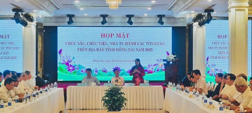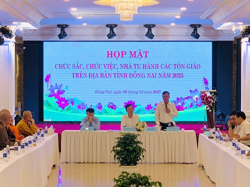 Nhằm gặp gỡ, trao đổi về những thuận lợi, khó khăn trong quá trình hoạt động tôn giáo của chức sắc, chức việc, nhà tu hành các tôn giáo trên địa bàn tỉnh, đồng thời lắng nghe những đóng góp của chức sắc, chức việc, nhà tu hành các tôn giáo đối với việc phát triển kinh tế xã hội và hoạt động của chính quyền địa phương 02 cấp; ngày 04/12 và 05/12/2025, tại Nhà hàng Sen vàng - Golden Lotus (105B, đường Hà Huy Giáp, phường Trấn Biên, tỉnh Đồng Nai), Sở Dân tộc và Tôn giáo phối hợp Ban Tuyên giáo và Dân vận Tỉnh ủy, Ủy ban Mặt trận Tổ quốc Việt Nam tỉnh, Công an tỉnh, Sở Nông nghiệp và Môi trường, Sở Xây dựng tổ chức các buổi họp mặt chức sắc, chức việc, nhà tu hành các tôn giáo trên địa bàn tỉnh Đồng Nai năm 2025.
